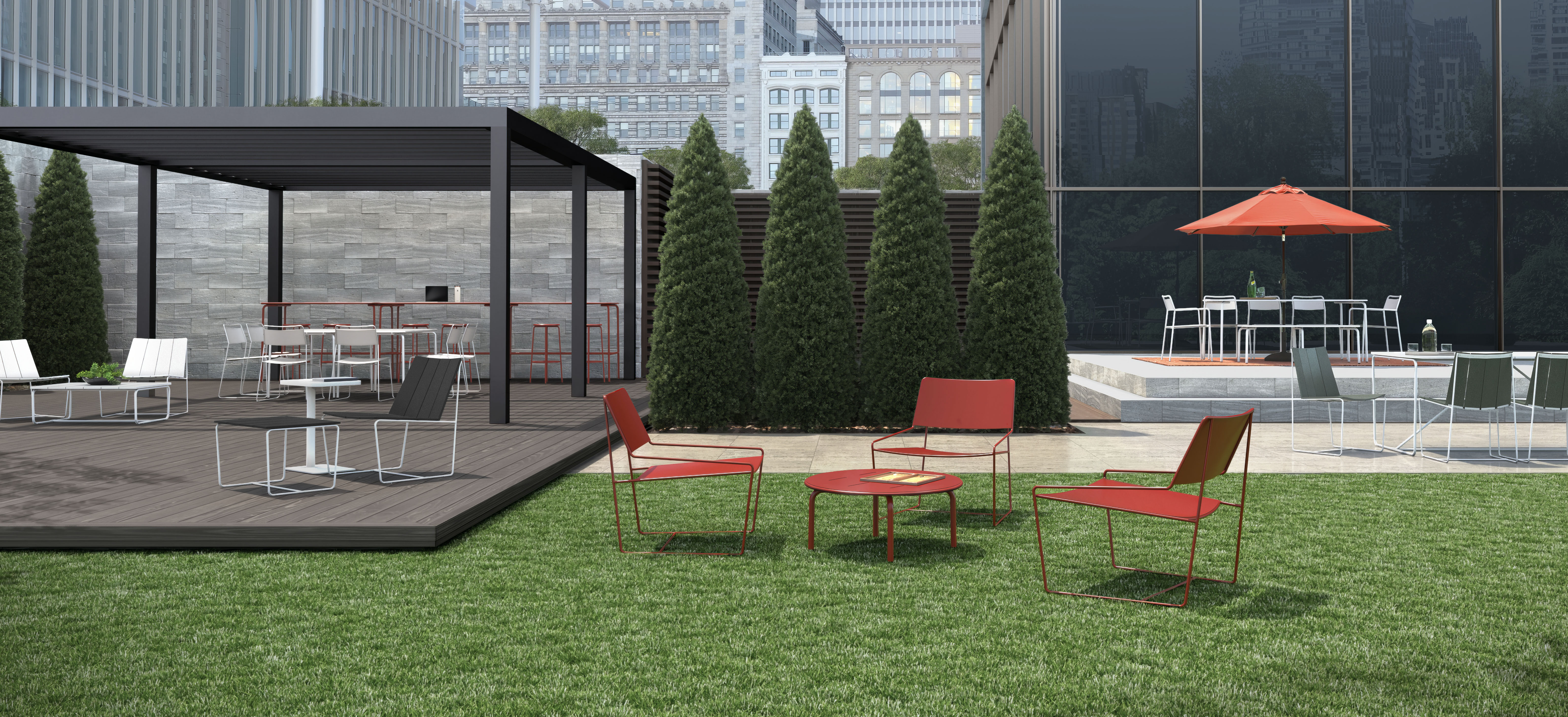 Beautiful, extensive, and durable, the Outdoor Collection is designed to enhance dining experiences, meeting areas, and relaxation spaces. With its diverse breadth and inspiring designs, the Outdoor Collection includes five exclusive lines: Cascade™ Series, Seaboard™ Series, Mesa™ Stacking Chair, Bryce™ Outdoor Wire Lounge, and Delago™ Tables. Each line is thoughtfully named to reflect nature, outdoor spaces, or parks.