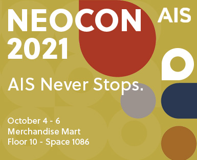 The company's NeoCon theme this year: AIS Never Stops! Leominster, MA – September 2021 – Massachusetts-based AIS, a leading manufacturer of commercial office furniture and seating, heads to NeoCon in Chicago this Oct. 4-6 where the company’s permanent showroom at theMART…