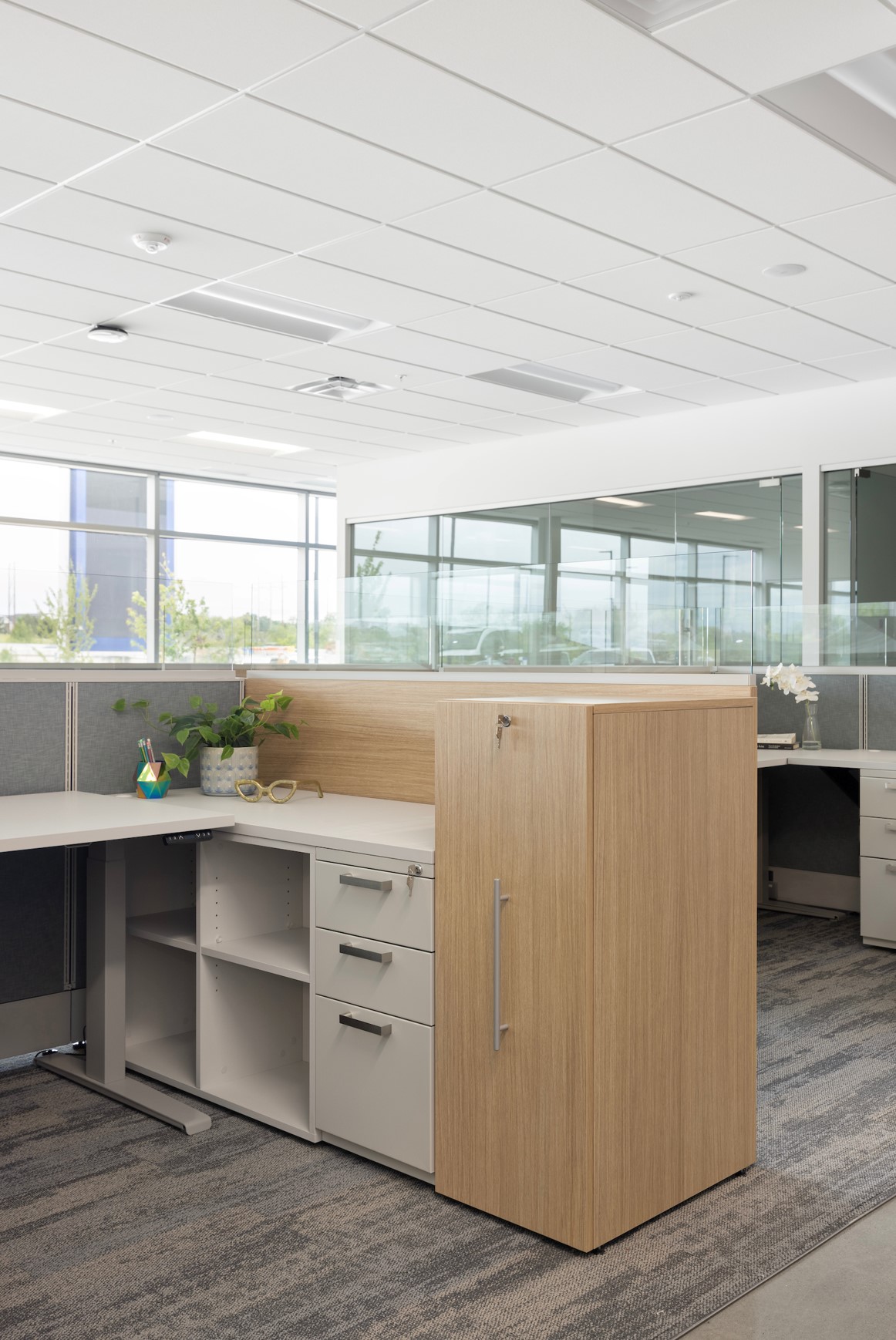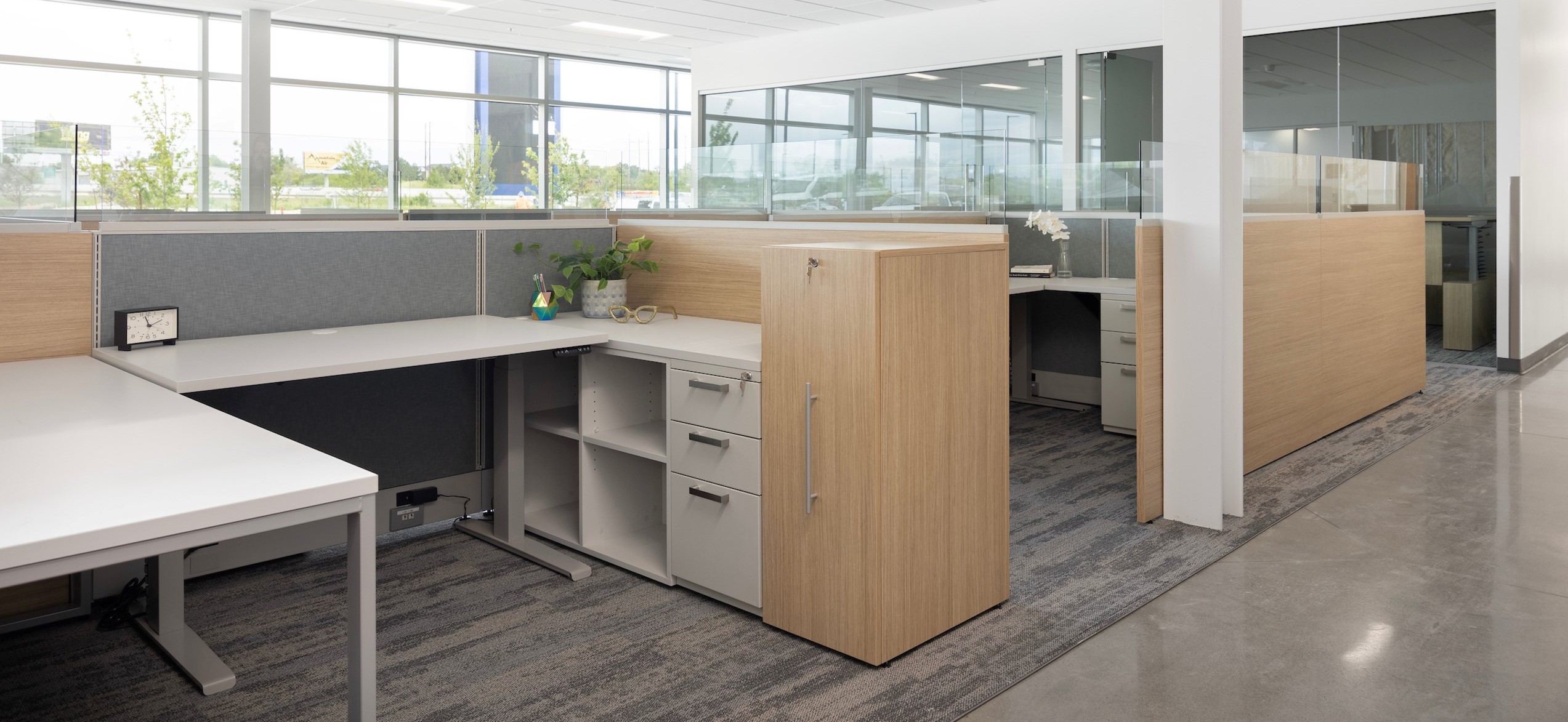 extensions. Private offices needed height adjustable desks with integrated storage. The last requirement was a partner skilled in custom modifications—all at competitive pricing.