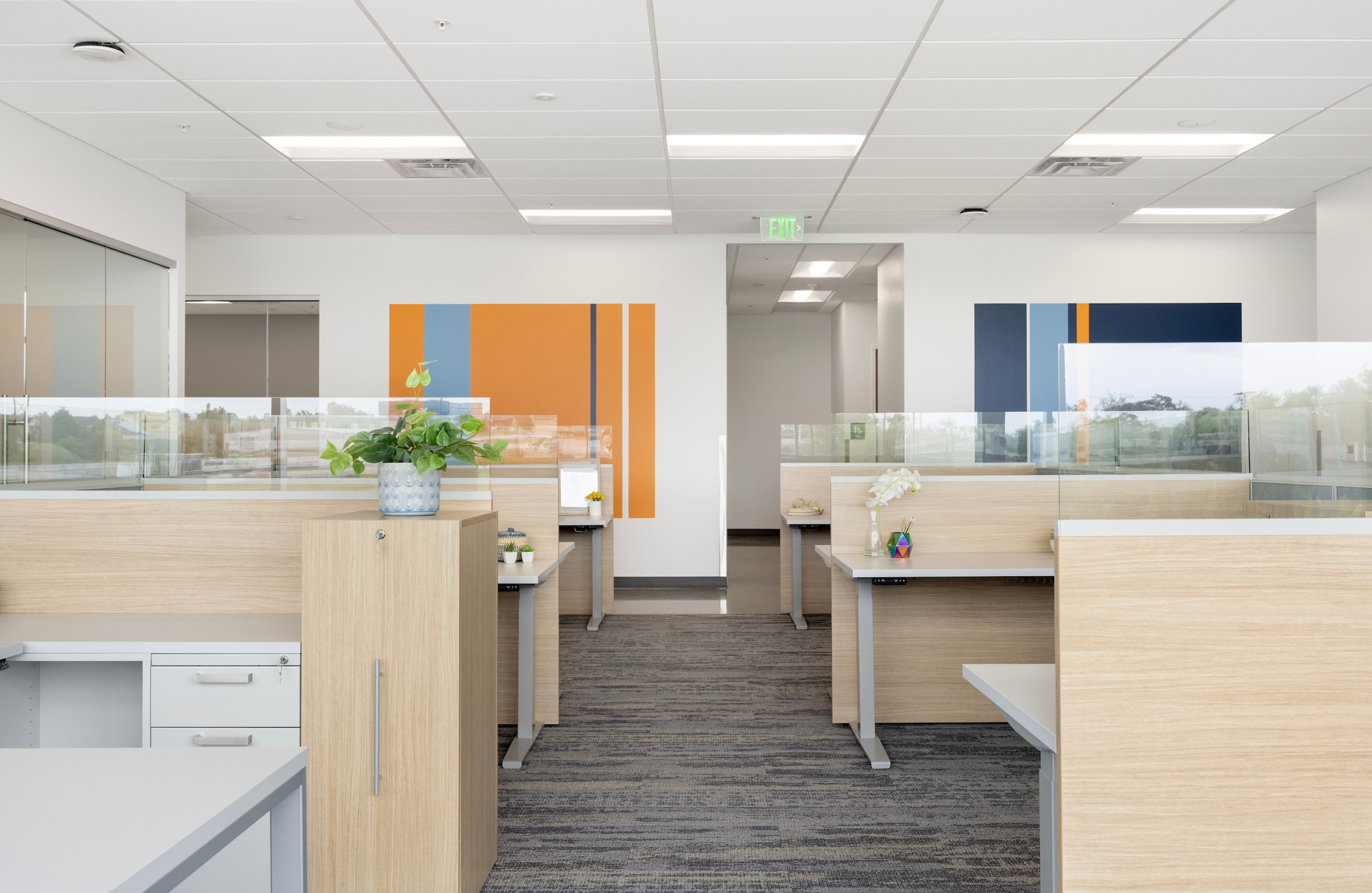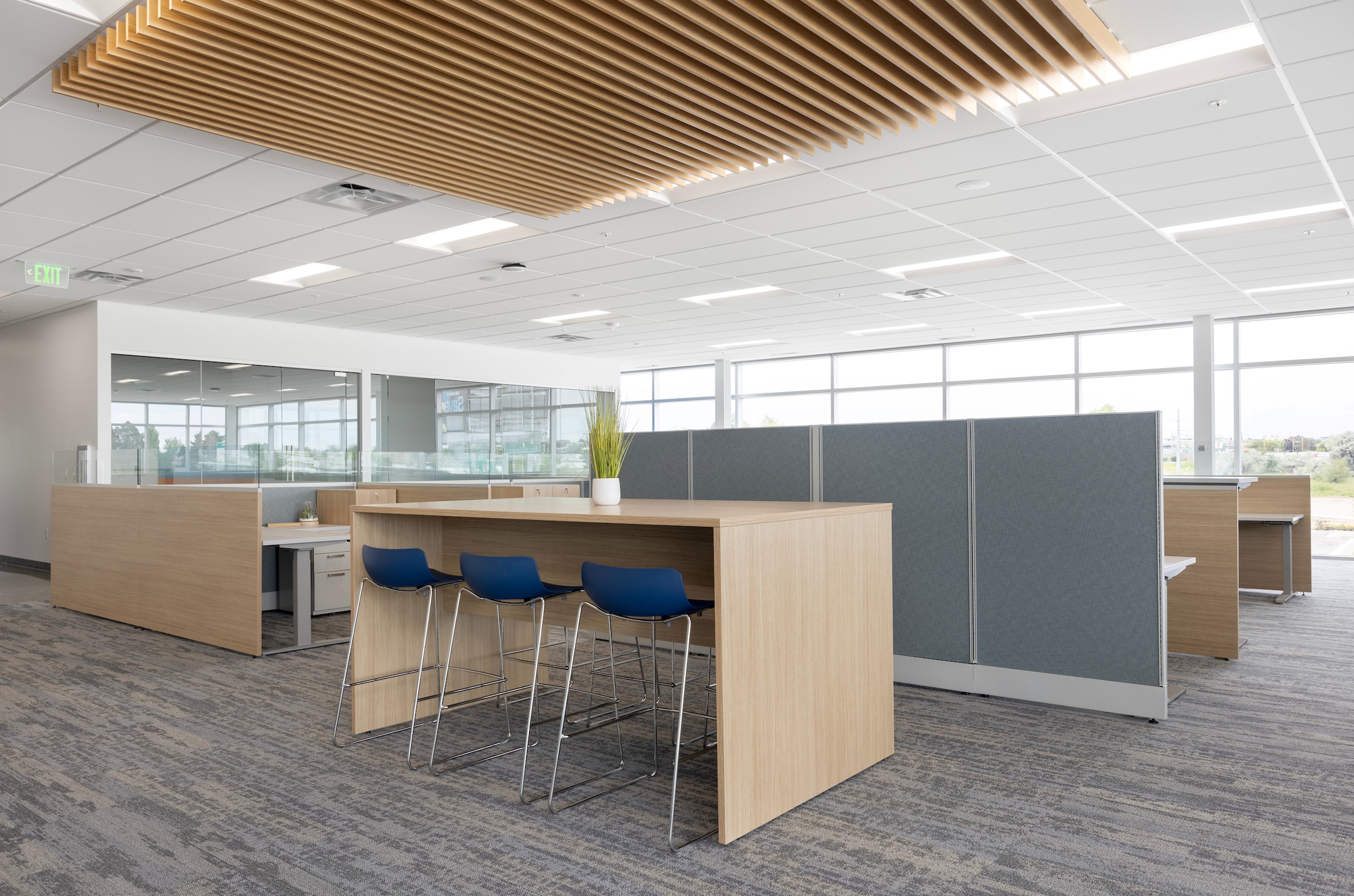 AIS delivered exactly what AFCU needed. The Divi panel system supported mid-run gallery panels with stable, custom frameless glass toppers—both functional, sturdier than the competition, and cost-effective. Calibrate private offices included custom depth height-adjustable desks with built-in storage to maximize space, while standing-height end tables enabled in- department meetings without extra conference rooms. The success of this first project led AFCU to standardize AIS for future installations.