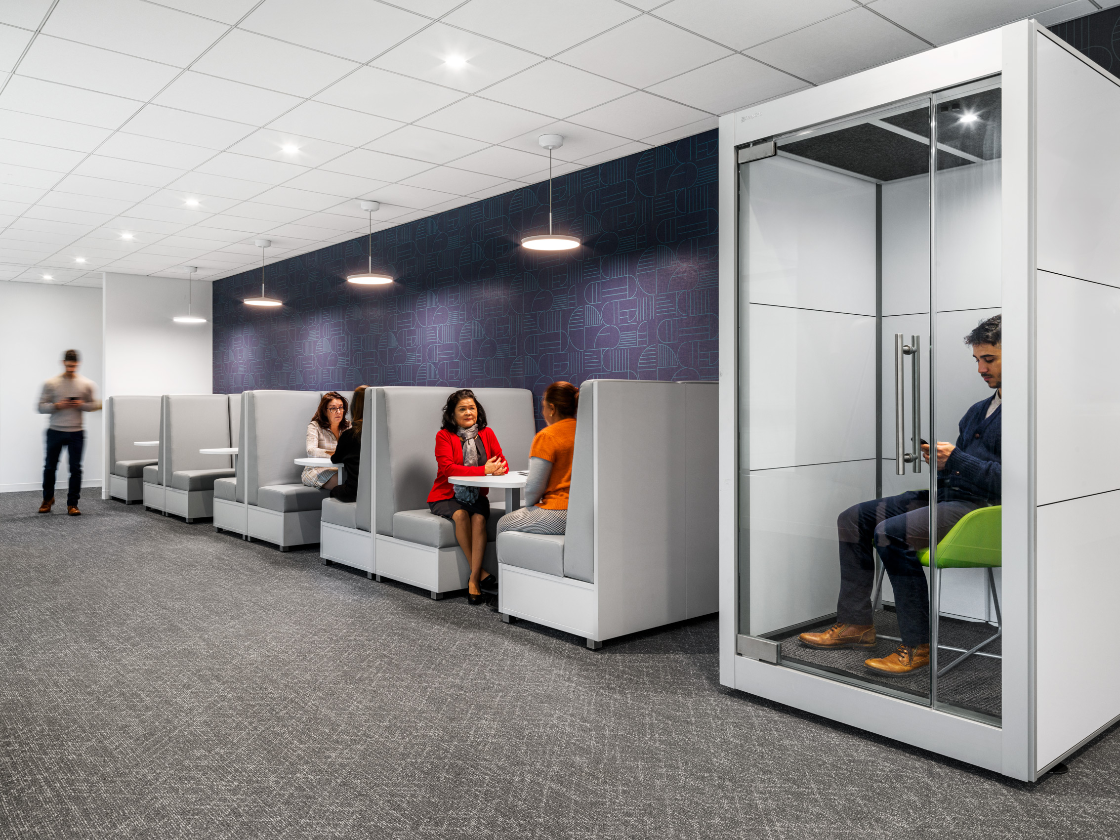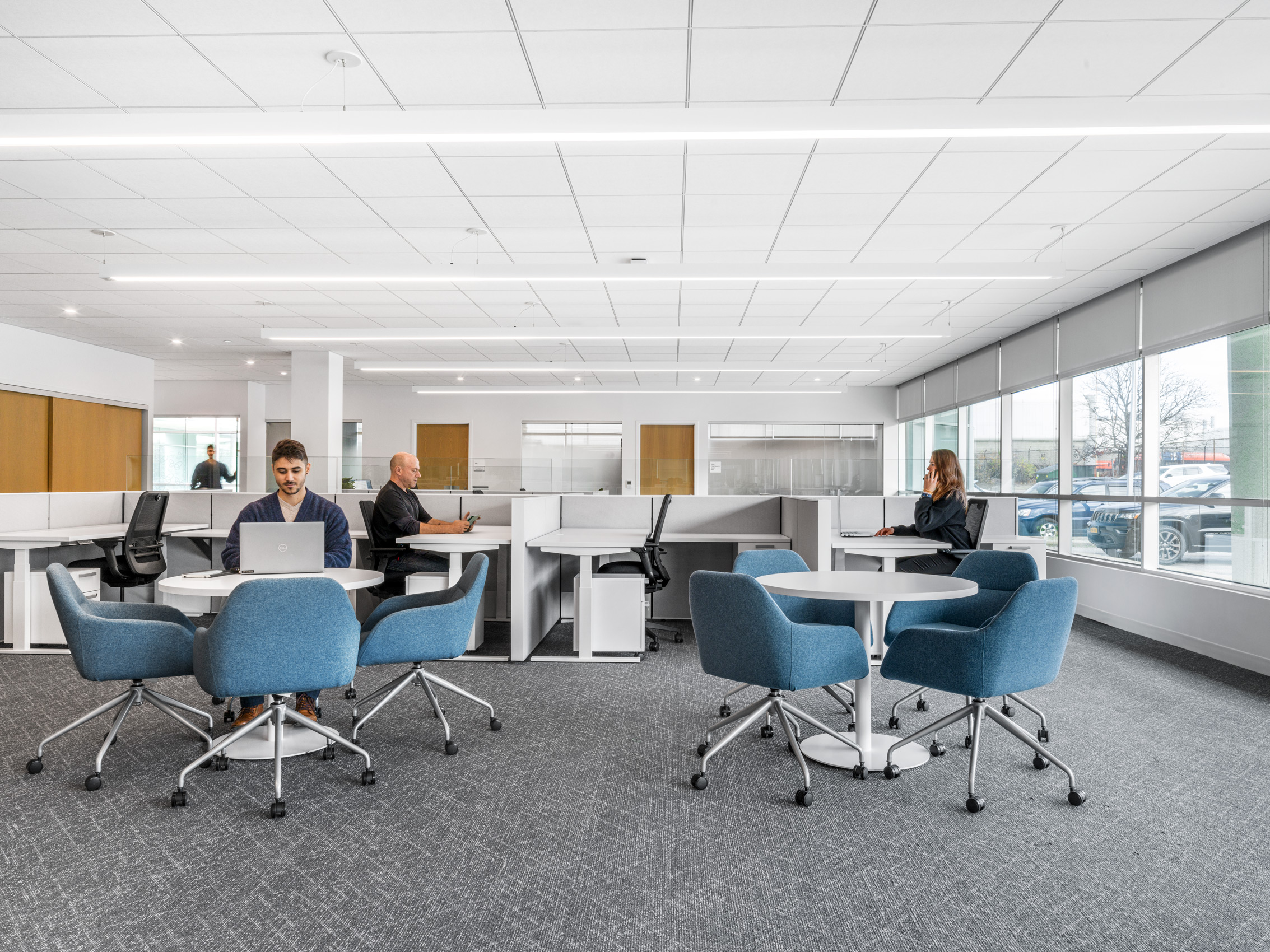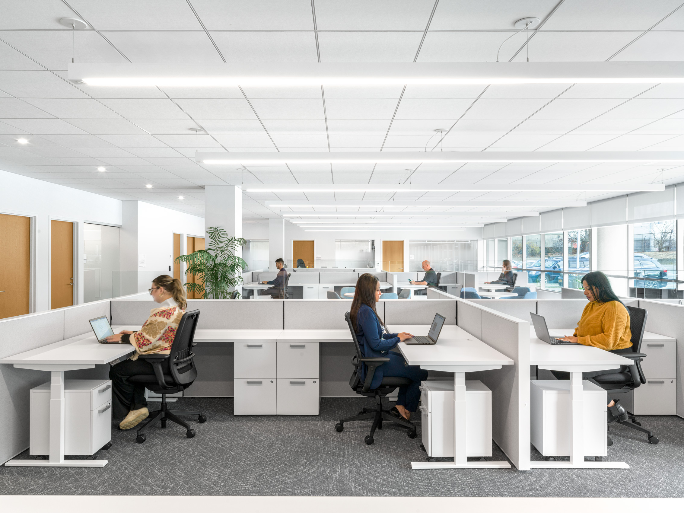 A New York based healthcare organization needed a new Long Island office that would strike the right balance between collaboration, privacy, and employee well-being. Their goal was to create a 20,000-square-foot workplace that could support both teamwork and focused individual tasks. This required a thoughtful mix of open workstations, private offices, huddle rooms, and collaborative areas to give staff flexibility and choice in how they worked.