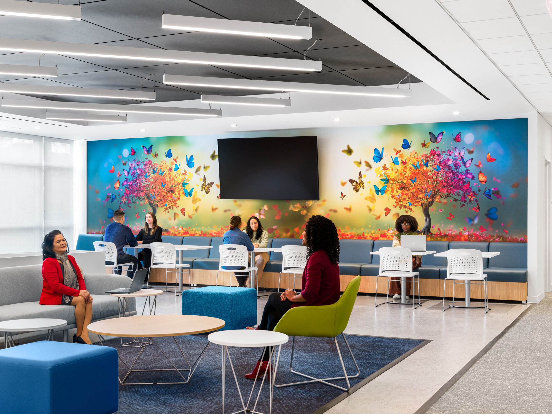 The completed design has delivered a workplace that elevates the employee experience while aligning with the organization’s core values. The overall atmosphere supports collaboration, focus, and well-being, directly reflecting the company’s mission of advancing community health. In addition, the project is on track to achieve Fitwel certification, reinforcing the organization’s commitment to creating a healthy, sustainable, and future-focused workplace.